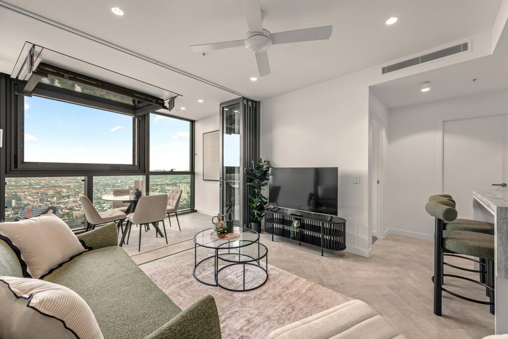 This lovely 56th-floor home is your perfect cozy retreat for an unforgettable trip to Brisbane. The open-plan living space is made for sharing special moments—whether curling up on the sofa for a movie night, chatting about the day's adventures, or whipping up tasty meals in the fully stocked kitchen. While the apartment doesn't have a traditional balcony, you'll love how the large window opens wide to bring the fresh air and stunning city views right inside, turning the living room into your own covered terrace. Pour yourself a drink, relax, and take in those picture-perfect vistas that might make you want to stay a little longer. After a day of exploring Brisbane's sights, sink into the comfy king bed or cozy up on the sofa bed—either way, you'll find the restful comfort you need to keep your story going. To continue writing the Brisbane fairy tale. ★ LIVING ROOM ★ Gather 'round to watch the latest episode of your favourite show, gaze at the scenic views, and much more in the heart of the modern open floor plan living area. ✔ Snug Sofa with Pillows (can be converted into an extra Full-Size Sofa Bed) ✔ Smart TV ✔ Stylish Sofa Chair ✔ Designer Coffee Tables ★ KITCHEN & DINING ★ The kitchen and dining area are part of the open living space, featuring a fresh, modern design with plenty of countertop space and up-to-date cooking amenities. You can easily prepare meals using fresh ingredients from the local market and enjoy dining together in a comfortable setting. ✔ Microwave ✔ Stove ✔ Oven ✔ Toaster ✔ Coffee Maker ✔ Refrigerator/Freezer ✔ Dishwasher ✔ Sink - Hot & Cold Water ✔ Plates ✔ Glasses ✔ Silverware ✔ Pots & Pans Start the day with a tasty breakfast and a cup of coffee at the kitchen island. The dining table will be the best choice for the occasion if you decide to have a delicious lunch or dinner in the condo. ✔ Dining Table with Seating for 4 ✔ Kitchen Island with Seating for 2 ★ SLEEPING ARRANGEMENTS – BEDROOM + LIVING ROOM ★ Here you will find the comforts needed to rest and relax after a fabulous day exploring Treasure Island. Get those precious hours of sleep; tomorrow is a new and exciting day! ✔ King-Size Bed with a Premium Mattress, Linens, Sheets, and Pillows ✔ Ensuite Bathroom ✔ Closet with Hangers and Shelves ✔ Night Stands with Reading Lamps *** For additional sleeping space, the living room sofa easily converts into a comfortable double bed, allowing the apartment to accommodate up to four guests. ★ BATHROOMS ★ The full bathroom is stocked with fresh, clean towels in all sizes to ensure a carefree stay. ✔ Walk-In Shower ✔ Vanity ✔ Mirror ✔ Toilet ✔ Towels ✔ Hair Dryer ✔ Starter Supply of Essential Toiletries (Shampoo, Conditioner, Body Wash, Toilet Paper, etc.) We know there's no place like home, but we promise our apartment will come in a close second.