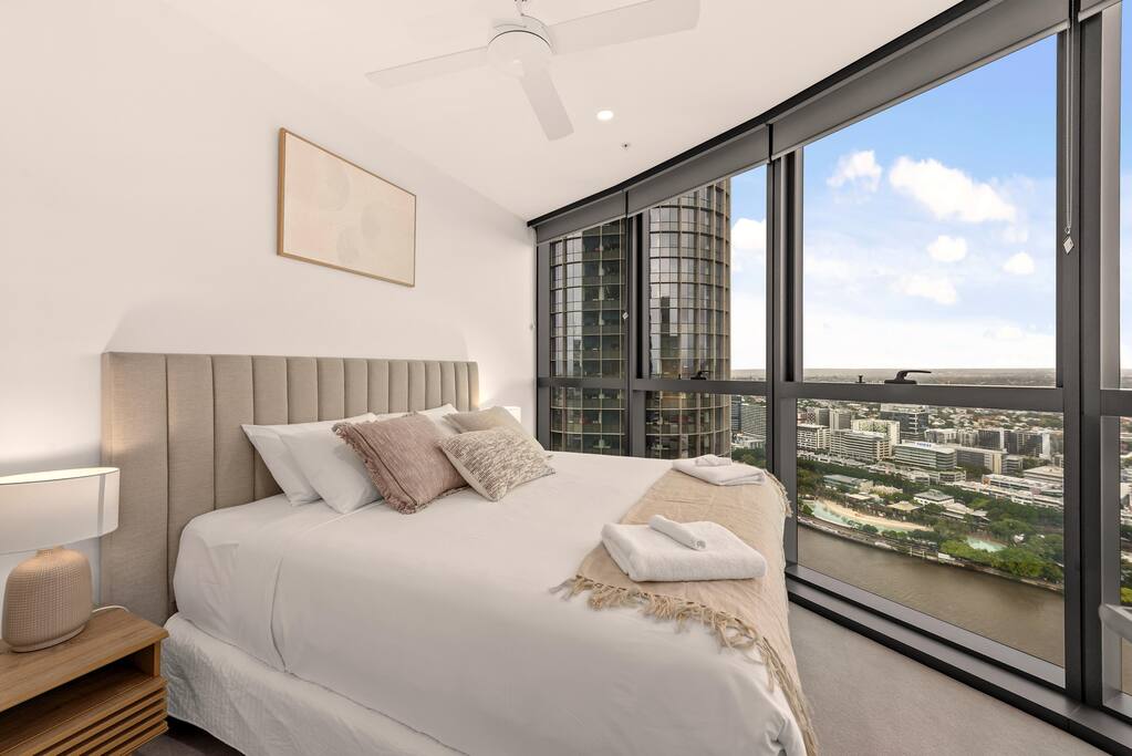 Immerse yourself in the relaxing, light-filled ambience that flawlessly complements the modern design of this inviting 36th-floor Queen's Wharf apartment. From room to room, you'll discover an array of contemporary amenities thoughtfully placed to enhance your stay. The open-concept living area is the heart of this retreat, creating the perfect setting for fun gatherings. The ample space guarantees that every moment spent here is enjoyable and memorable. As day turns to night and you seek a tranquil rest, you'll find it in two snug bedrooms that promise comfort and style, ensuring you wake up refreshed and ready to embark on your next thrilling Brisbane adventure. But one of the most treasured features of this apartment is the charming balcony. Step outside and savour the fresh air and lovely river and city views; this balcony is the ideal spot to unwind with a morning coffee, bask in the sun, or savour a glass of wine as the sun sets, casting a warm, golden glow over the mesmerising vistas. ★ LIVING ROOM ★ The moment you enter the apartment, you'll be drawn to the living room's comforts, setting the scene for countless memorable evenings. ✔ Snug Sofa with Pillows ✔ Smart TV ✔ Comfy Sofa Chair ✔ Coffee Tables ✔ Access to the Balcony ★ KITCHEN & DINING ★ Stock up on fresh ingredients, arrange them on the expansive countertops and the kitchen island, and use our culinary tools to craft delicious dishes for the entire party. ✔ Microwave ✔ Stove ✔ Oven ✔ Toaster ✔ Coffee Maker ✔ Hot Water Kettle ✔ Refrigerator/Freezer ✔ Dishwasher ✔ Sink - Hot & Cold Water ✔ Plates ✔ Glasses ✔ Silverware ✔ Pots & Pans Set the table and serve those delicious meals for a tasty homemade meal whenever you decide to take a break from fantastic Brisbane restaurants. ✔ Dining Table with Seating for 4 ✔ Kitchen Island with Seating for 4 ★ SLEEPING ARRANGEMENTS – 2 BEDROOMS ★ Explore the apartment to discover two inviting king bedrooms, each thoughtfully adorned to offer the ultimate relaxation after a thrilling day in Brisbane. ♛ Bedroom 1: King-Size Bed ♛ Bedroom 2: King-Size Bed Both bedrooms come furnished with a matching array of conveniences. ✔ Premium Mattresses, Linens, Sheets, and Pillows ✔ Closets with Hangers and Shelves ✔ Night Stands with Reading Lamps ★ BATHROOM ★ You won't miss a thing in our two full bathrooms, adorned with clean towels and essential toiletries, ensuring comfort and convenience throughout your stay. ✔ Walk-In Shower ✔ Vanity ✔ Mirror ✔ Toilet ✔ Towels ✔ Hair Dryer ✔ Starter Supply of Essential Toiletries (Shampoo, Conditioner, Body Wash, Toilet Paper, etc.) ★ BALCONY ★ Emerge onto the balcony from the living space and be captivated by the splendid vistas of the winding river and bustling streets of Brisbane. It's an ideal spot for a refreshing drink during a slow afternoon. ✔ Lounge Seating Area with a Table & Cozy Chairs Your unforgettable Brisbane retreat awaits – book your stay with us today and make cherished memories in this luxurious oasis.