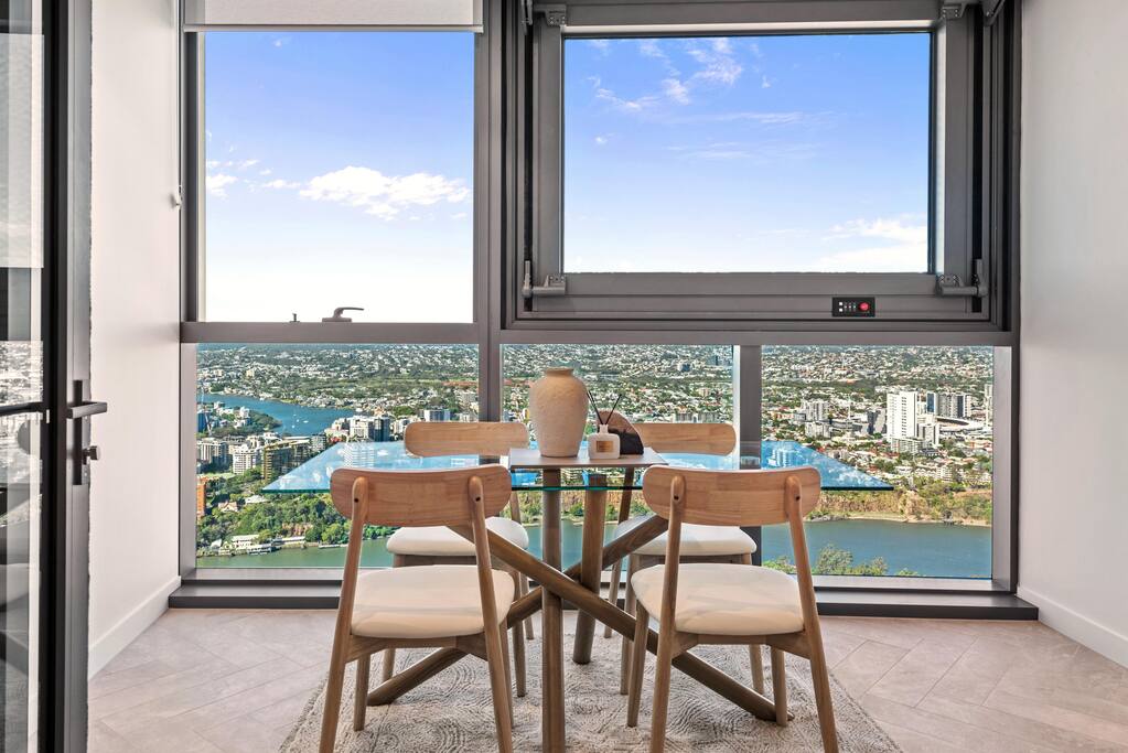 This modern apartment perched on the 60th floor of the iconic Queens Wharf welcomes you to experience Brisbane from a breathtaking new perspective. From the moment you walk in, the light-filled, open living space feels like home—perfect for sharing stories, laughter, and moments that last in memory. Settle into the inviting living room for a cozy movie night while a delicious meal simmers away in the fully equipped kitchen. After a day of exploring the city, retreat to the serene king bedroom designed for deep rest and peaceful mornings. Slip into comfort and wake up refreshed, ready to dive into another day of Brisbane's vibrant energy. Floor-to-ceiling windows frame sweeping views of the sparkling cityscape and river below. Open the central window to transform the space into a Juliet balcony—let the gentle breeze and fresh air remind you how special this 60th-floor retreat truly is. From discovering Brisbane's top attractions to simply unwinding above the bustle, this apartment offers a perfect blend of warmth, comfort, and unforgettable views that will make you feel right at home. ★ LIVING ROOM ★ Immerse yourself in the chic, bright living room, where you can watch TV, take a break to marvel at the views, and more, all while enjoying the modern open-plan living area. ✔ Comfy Sofa with Pillows (can be converted into an extra Full-Size Sofa Bed) ✔ Smart TV ✔ Sofa Chair & Coffee Table ★ KITCHEN & DINING ★ The kitchen boasts an upscale contemporary design with spacious countertops, a central kitchen island, and modern amenities, providing everything you need to create delicious dishes. ✔ Microwave ✔ Stove ✔ Oven ✔ Toaster ✔ Coffee Maker ✔ Refrigerator/Freezer ✔ Dishwasher ✔ Sink - Hot & Cold Water ✔ Plates ✔ Glasses ✔ Silverware ✔ Pots & Pans Not many restaurants can boast views you'll enjoy while savouring tasty meals in the complete privacy of this lovely apartment. ✔ Dining Table with Seating for 4 ✔ Kitchen Island with Seating for 2 ★ SLEEPING ARRANGEMENTS – BEDROOM + LIVING ROOM ★ The bedroom provides a cozy retreat where you can unwind and recharge after a wonderful day exploring the city. Enjoy a peaceful night's sleep—you'll wake up refreshed and ready for another exciting day in Brisbane. ✔ King-Size Bed with a Premium Mattress, Linens, Sheets, and Pillows ✔ Ensuite Bathroom ✔ Closet with Hangers and Shelves ✔ Night Stands with Reading Lamps *** For extra sleeping space, the living room sofa transforms into a comfy double bed, making it easy to welcome up to four guests for a relaxing stay. ★ BATHROOMS ★ The home features a full bathroom that will keep you fresh and rejuvenated. To ensure you have a comfortable, carefree stay, we have provided essential toiletries and pampering towels. ✔ Walk-In Shower ✔ Vanity ✔ Mirror ✔ Toilet ✔ Towels ✔ Hair Dryer ✔ Starter Supply of Essential Toiletries (Shampoo, Conditioner, Body Wash, Toilet Paper, etc.) The warm and familiar feel of home is hard to beat, but we're sure this apartment will feel just as welcoming from the moment you walk in.