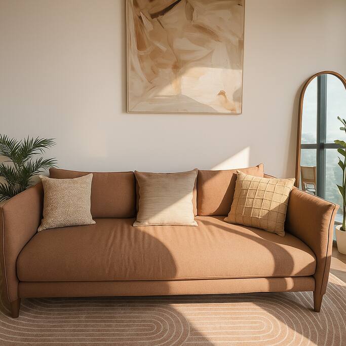 As soon as you walk through the door of this stunning 58th-floor apartment, you'll instantly feel at home. The open-concept living space welcomes you with beautiful decor, soft lighting, and a serene vibe that fits perfectly with the stylish Queen's Wharf location. The modern kitchen flows effortlessly into the dining area, inviting you to prepare favourite dishes, share slow meals, and enjoy conversation around the table. When the evening arrives, sink into the cozy living room for a movie night or unwind as the city sparkles below. By day, sunlight streams through the floor-to-ceiling windows, creating a bright, uplifting atmosphere that highlights every carefully chosen design detail. After exploring the city, retreat to the tranquil king bedroom, designed for rest and relaxation. The living room sofa easily transforms into a comfortable double bed, making the apartment a perfect fit for up to four guests. Step outside to your private balcony high above the city—your own piece of sky. Enjoy your morning coffee as the city wakes or a glass of wine as the lights shimmer along the river. We hope you'll make yourself at home here, soaking in the views, comfort, and warmth that make this apartment such a special place to stay. ★ LIVING ROOM ★ You'll feel right at home here. Curl up on the cozy sofa, catch your favourite show, or chat about tomorrow's Brisbane adventures while soaking in the relaxed atmosphere. ✔ Comfortable Sofa with Pillows (can be extended into an extra Double Sofa Bed) ✔ Smart TV ✔ Chic Sofa Chair ✔ Stylish Coffee Table ✔ Access to the Balcony ★ KITCHEN & DINING ★ The kitchen has everything you need to make cooking a pleasure. With sleek modern appliances and generous counter space, it's easy to prepare anything from a quick breakfast to a cozy dinner to share with loved ones. ✔ Microwave ✔ Stove ✔ Oven ✔ Toaster ✔ Coffee Maker ✔ Hot Water Kettle ✔ Refrigerator/Freezer ✔ Dishwasher ✔ Sink - Hot & Cold Water ✔ Plates ✔ Glasses ✔ Silverware ✔ Pots & Pans Catch up with your family and friends on the lavish balcony while the food is prepared. When done, gather at the dining table and savour a delicious meal in an inviting atmosphere. ✔ Dining Table with Seating for 4 ✔ Kitchen Island with Seating for 2 ★ SLEEPING ARRANGEMENTS – BEDROOM + LIVING ROOM ★ After a fun-filled day exploring Brisbane's sights and landmarks, unwind and recharge for another day of adventure. When it's time to rest, retreat to the inviting bedroom and enjoy a peaceful night's sleep. ✔ King-Size Bed with a Premium Mattress, Linens, Sheets, and Pillows ✔ Ensuite Bathroom ✔ Closet with Hangers and Shelves ✔ Night Stands with Reading Lamps ✔ Access to the Balcony ***If more sleeping space is required, the living room sofa can be converted into an extra Double Bed, making the apartment suitable for four guests. ★ BATHROOM ★ The accommodating apartment boasts a spa-like full bathroom, stocked with pampering towels and a starter set of necessities, to ensure a carefree stay. ✔ Walk-In Shower ✔ Vanity ✔ Mirror ✔ Toilet ✔ Towels ✔ Hair Dryer ✔ Starter Supply of Essential Toiletries (Shampoo, Conditioner, Body Wash, Toilet Paper, etc.) ★ BALCONY ★ A stunning haven would not be complete without a private space to take in the serenity and beauty of central Brisbane. Step onto the balcony offering a tranquil outdoor oasis from which you can marvel at the magnificent city and river views! ✔ Lounge Seating Area with a Table & Cozy Chairs Find your happiness in this attractive retreat. It offers a place to escape the hustle and bustle of everyday life, to cuddle on the sofa, to watch a movie, to unwind on the balcony, to discover luxurious on-site facilities, and to explore exciting Brisbane attractions. Don't hesitate to contact us with any questions you may have. Happy Travels!