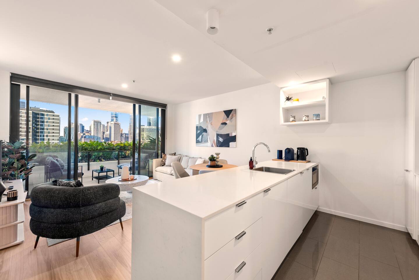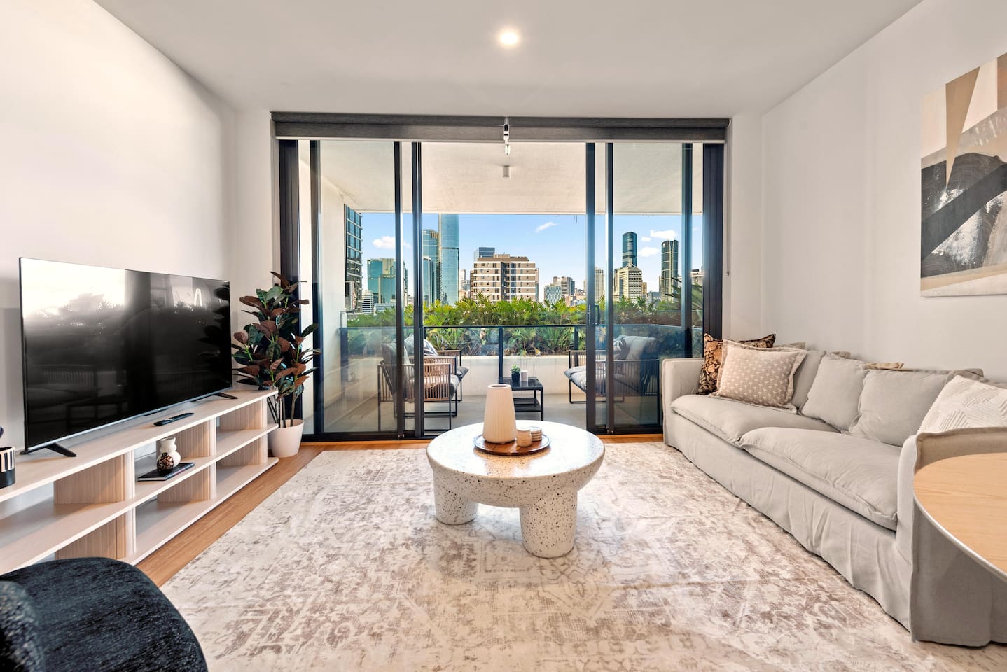 oak up Brisbane’s city skyline from this elevated Ivy & Eve apartment, offering modern open-plan living, refined finishes and a calm, light-filled feel. With two king bedrooms and free secure parking, this stylish retreat is ideal for couples, friends or business travellers seeking comfort and location in South Brisbane. ✔ No Added Cleaning Fee ✔ 2 King Bedrooms ✔ Full Kitchen & Open Living ✔ Smart TV & High-Speed Wi-Fi ✔ Pool & Gym Access ✔ 1 Free Secure Parking Space