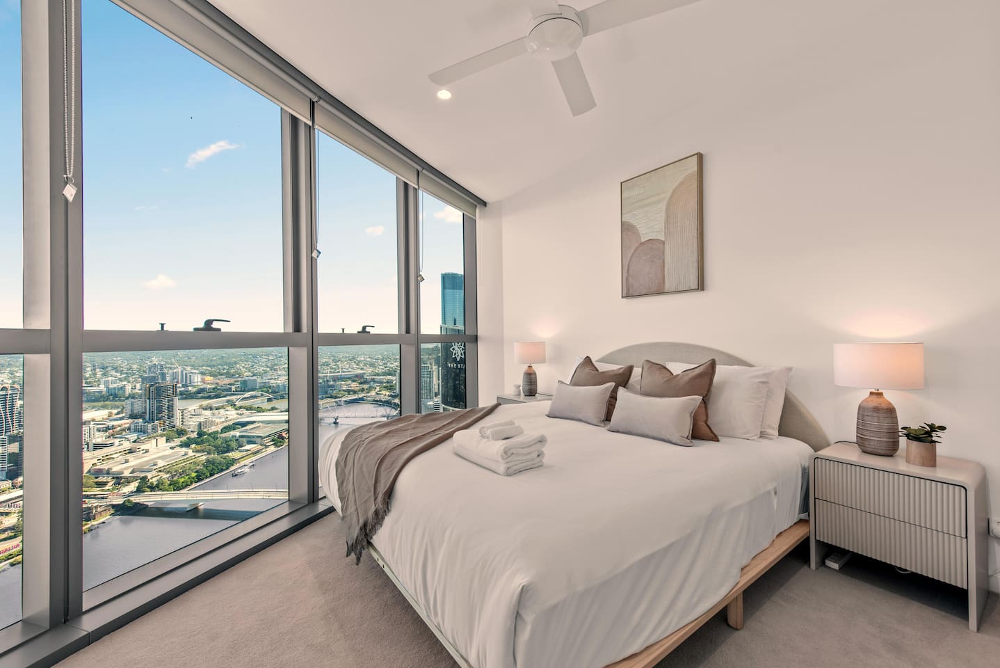 Experience elevated Brisbane living in this Diamond-Class 3BR retreat on Level 47 of Queen’s Wharf. Enjoy sweeping river & skyline views, a Juliet-style electric window, modern interiors, premium bedding and two secure onsite parking spaces — perfect for families, business travellers or group getaways. ✔ No Added Cleaning Fee ✔ 3 Bedrooms (Sleeps 6) ✔ Full Kitchen & Laundry ✔ Juliet-Style Indoor Balcony ✔ Pool, Gym, Sauna & Restaurants ✔ 2 Free Secure Parking Spaces Learn more below 👇