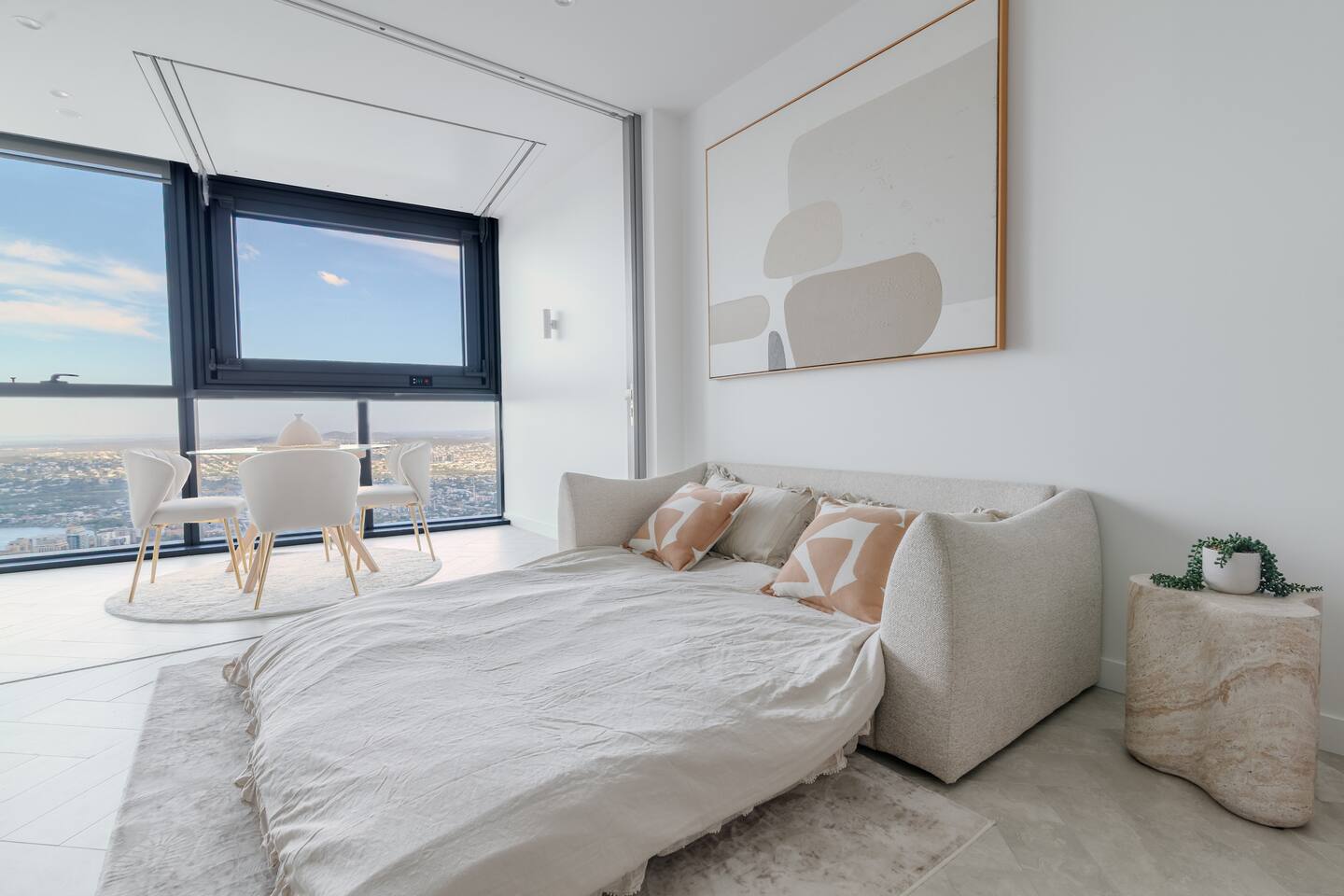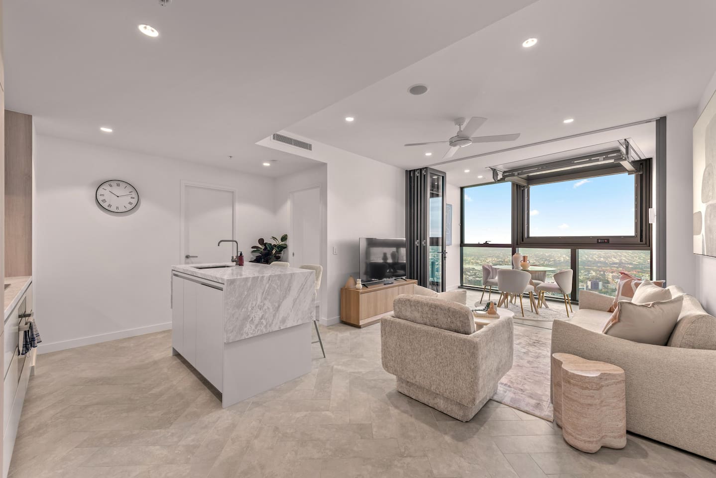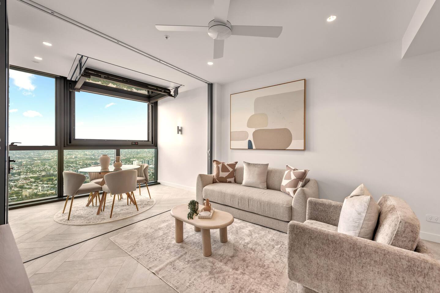 💎 Your Diamond-Class Brisbane Escape | Queen’s Wharf Level 63. Welcome to your Level 63 Diamond-Class sanctuary, where floor-to-ceiling glass, warm beige and chocolate tones, and panoramic river & skyline views create the perfect elevated retreat. Ideal for couples, corporate travellers, or a relaxed Brisbane stay, this beautifully styled home blends luxury with the warmth of home. Unwind in the bright open-plan living space, open the electric retractable windows to enjoy fresh air and city breezes, and watch Brisbane light up beneath you. Every detail is designed for calm, connection and comfort. 🚗 Parking (Included) One secure parking space is provided for your stay: ✔ Located in a nearby Wilson garage (200m away) ✔ Secure, covered, well-lit ✔ Swipe card access included ✔ Height limit 1.8m ✔ Full directions + map provided in arrival guide 🛋️ Living Room A bright, tranquil space made for relaxing, working, or enjoying the skyline. ✔ Cozy Sofa (Converts to Queen Bed) ✔ Smart TV ✔ Accent Chair & Coffee Table ✔ Floor-to-Ceiling Glass ✔ Electric Indoor Balcony Window ✔ River & City Views 🍽️ Kitchen & Dining Cook, work or unwind in this sleek, fully equipped kitchen. ✔ Oven, Stove, Microwave & Dishwasher ✔ Coffee Maker with Pods, Toaster, Kettle, Rice Cooker, Blender & Sandwich Press ✔ Tea Selection + Sugar ✔ Salt, Pepper & Cooking Oil ✔ Refrigerator/Freezer ✔ Cookware, Glassware & Utensils ✔ Bottled Water, Milk & Welcome Gift ✔ Dining Table for 4 ✔ Breakfast Bar for 2 ✔ All-in-One Bosch Washer/Dryer 🛏️ Bedroom Your serene retreat with soft textures, warm lighting and skyline views. ✔ King Bed with Premium Linens ✔ Ensuite Bathroom ✔ Built-In Wardrobe ✔ Bedside Tables with Lamps 🛁 Bathroom Fresh, modern and fully stocked for a comfortable stay. ✔ Walk-In Shower & Vanity ✔ Fresh Towels ✔ Hair Dryer ✔ Starter Toiletries 🔒 Safety Features ✔ Smoke alarms ✔ First Aid Kit ✔ Carbon monoxide detector ✔ Fire extinguisher & Blanket 💼 Additional Comforts ✔ No Added Cleaning Fee ✔ High-Speed Wi-Fi ✔ All-In-One Bosch Washer/Dryer ✔ Iron & Ironing Board ✔ Clothes Drying Rack ✔ Laundry Pods, Dishwashing Pods & Washing Liquid ✔ Ducted Air Conditioning & Heating ✔ Pool, Gym, Sauna and Steam Room Access ✔ Business Centre Downstairs with Dedicated Workspace Areas ✔ Kids’ Items Always Available (Cot, High Chair, Bowls, Plastic Cups, Baby Bath) 🌇 Indoor Balcony (Electric Window) Your elevated viewpoint over Brisbane: ✔ Large Electric Opening Window ✔ Open-Air Juliet Feel ✔ Stunning River & Skyline Views Perfect for morning coffee, laptop work or sunset wine.