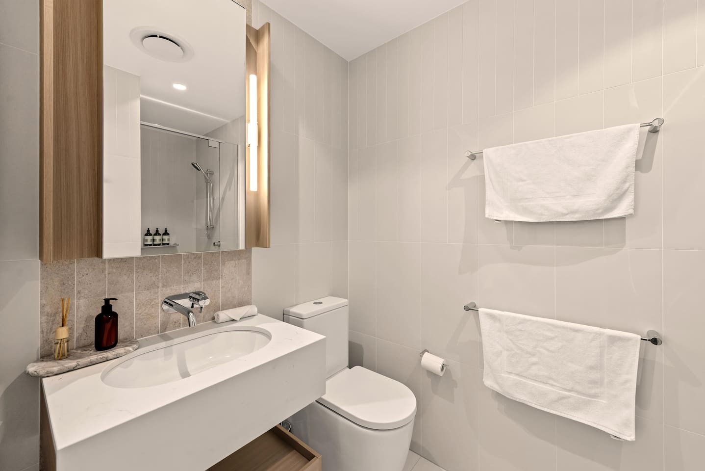 Your Modern Brisbane Retreat | Queen’s Wharf Level 36 Immerse yourself in light-filled comfort high above the city in this beautiful 36th-floor Queen’s Wharf apartment. With open spaces, elegant finishes, and panoramic river views, this 2-bedroom oasis combines modern convenience with a calm, home-like warmth that makes every stay unforgettable. 🚗 Parking (Included) One secure parking space is provided for your stay: ✔ Located in the building ✔ Secure, covered, well-lit ✔ Swipe card access included ✔ Height limit 2.3m ✔ Full directions + map provided in arrival guide 🛋️ Living Room Relax in the spacious lounge, where floor-to-ceiling windows fill the room with sunlight by day and sparkling skyline views by night. It’s perfect for movie nights, morning coffee, or unwinding with a glass of wine after a busy day. ✔ Plush Sofa & Accent Chair ✔ Smart TV ✔ Coffee Table ✔ Direct Balcony Access with River & City Views 🍽️ Kitchen & Dining The fully equipped kitchen makes dining easy — whether you’re preparing breakfast before a meeting, hosting dinner with friends, or enjoying a quiet night in. ✔ Oven, Stove, Microwave & Dishwasher ✔ Coffee Maker with Pods, Toaster, Kettle, Rice Cooker, Blender & Sandwich Press ✔ Refrigerator/Freezer & Cookware ✔ Dining Table for 4 + Kitchen Island Seating for 4 ✔ Bottled Water, Milk & Welcome Gift on Arrival 🛏️ Bedrooms (2) After a day of work or exploration, retreat to one of two serene king bedrooms. Both feature premium linens, soft lighting, and warm tones for deep rest and peaceful mornings. ✔ Bedroom 1 – King Bed with Ensuite Access ✔ Bedroom 2 – King Bed ✔ Built-In Wardrobes, Nightstands & Reading Lamps 🛁 Bathrooms (2) Two contemporary bathrooms with sleek finishes and full amenities ensure everyone enjoys space and comfort. ✔ Walk-In Showers, Vanity & Mirror ✔ Fresh Towels & Hair Dryer ✔ Starter Toiletries (Shampoo, Conditioner, Body Wash, Toilet Paper) 🌿 Balcony Step onto your private balcony and take in Brisbane’s skyline and river views — the perfect place for morning coffee or to unwind after work. ✔ Outdoor Seating & Table ✔ River & City Views 🔒 Safety Features ✔ Smoke alarms ✔ First Aid Kit ✔ Carbon monoxide detector ✔ Fire extinguisher & Blanket 💼 Additional Comforts ✔ No Added Cleaning Fee ✔ High-Speed Wi-Fi ✔ All-In-One Bosch Washer/Dryer ✔ Iron & Ironing Board ✔ Clothes Drying Rack ✔ Laundry Pods, Dishwashing Pods & Washing Liquid ✔ Ducted Air Conditioning & Heating ✔ Pool, Gym, Sauna and Steam Room Access ✔ Business Centre Downstairs with Dedicated Workspaces ✔ Kids’ Items Always Available (Cot, High Chair, Bowls, Plastic Cups, Baby Bath)